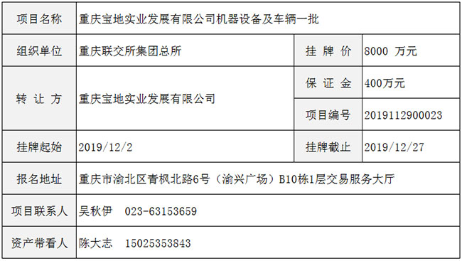 重庆宝地实业发展有限公司机器设备及车辆一批