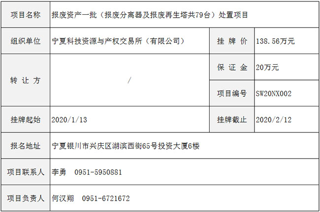 报废资产一批(报废分离器及报废再生塔共79台)处置项目