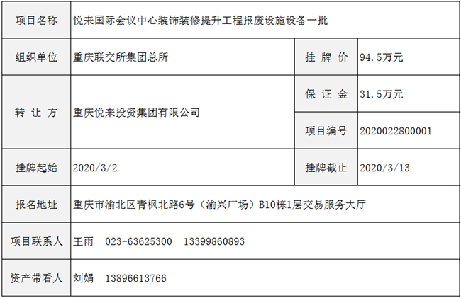 悦来国际会议中心装饰装修提升工程报废设施设备一批