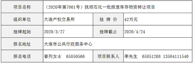 (2020年第7001号)抚顺石化一批报废库存物资转让项目