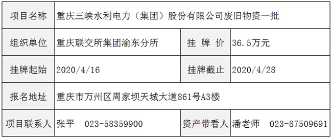 重庆三峡水利电力(集团)股份有限公司废旧物资一批