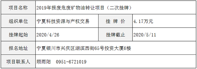 2019年报废危废矿物油转让项目