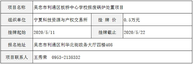 吴忠市利通区板桥中心学校报废锅炉处置项目