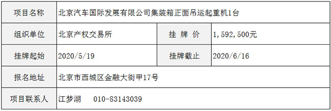 北京汽车国际发展有限公司集装箱正面吊运起重机1台