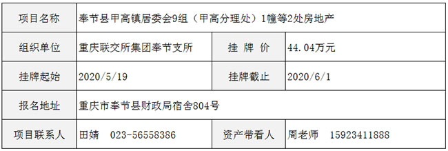 奉节县甲高镇居委会9组(甲高分理处)1幢等2处房地产