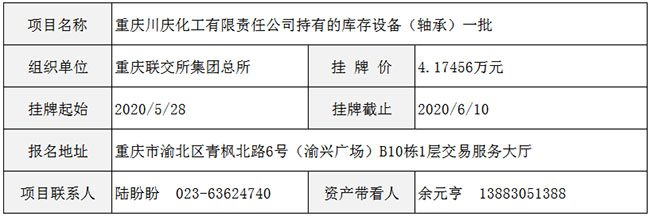 重庆川庆化工有限责任公司持有的库存设备(轴承)一批