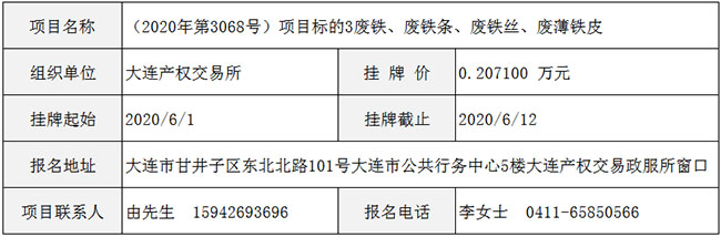 (2020年第3068号)项目标的3废铁、废铁条、废铁丝、废薄铁皮
