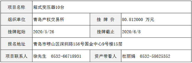 2020-06-01 16:19:35.0 来源:青海产权交易市场 点击数:2396