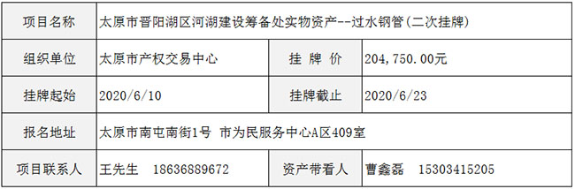 太原市晋阳湖区河湖建设筹备处实物资产--过水钢管(二次挂牌)