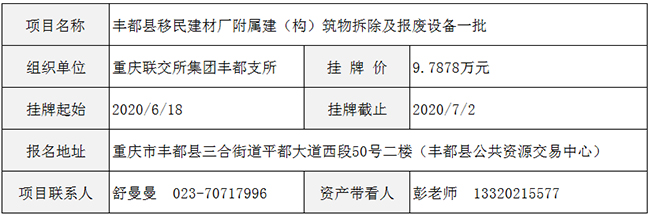 丰都县移民建材厂附属建(构)筑物拆除及报废设备一批