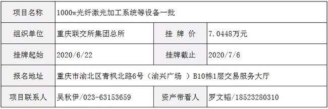 1000w光纤激光加工系统等设备一批