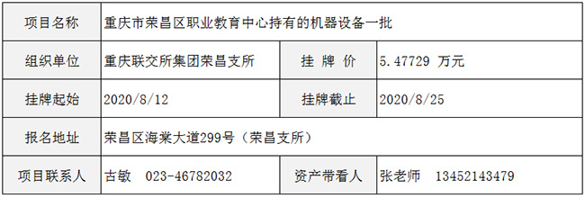 重庆市荣昌区职业教育中心持有的机器设备一批
