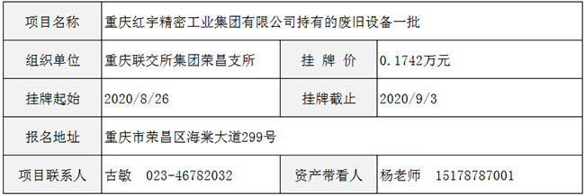 重庆红宇精密工业集团有限公司持有的废旧设备一批