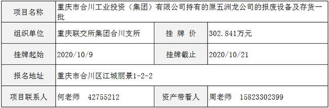 重庆市合川工业投资(集团)有限公司持有的原五洲龙公司的报废设备及存货一批