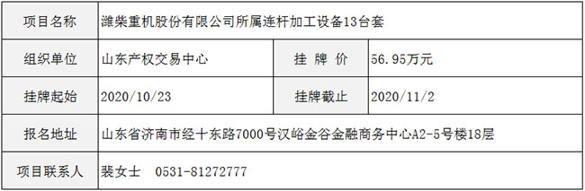 潍柴重机股份有限公司所属连杆加工设备13台套