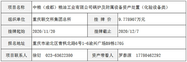 中粮(成都)粮油工业有限公司锅炉及附属设备资产处置(化验设备类)