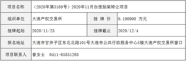 2020-11-23 16:39:55.0 来源:青海产权交易市场 点击数:2353