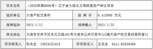 (2020年第6006号)辽宁省大连水文局报废资产转让项目