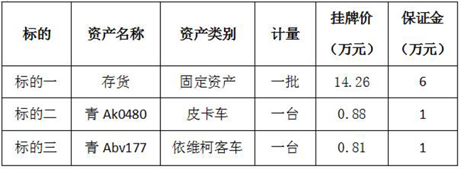 受青运集团西宁潍柴技术服务有限公司委托,依据《中华人民共和国企业国有资产法》《企业国有资产交易监督管理办法》(国务院国资委、财政部第32号令)《青海省企业国有资产交易监督管理办法》(青国资产〔2017〕339号)的相关规定,青海省产权交易市场对青运集团西宁潍柴技术服务有限公司持有的部分存货、固定资产及车辆(附明细)进行公开降价转让。